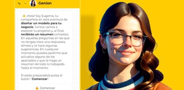 Al asistente virtual recibió el nombre de EUGENIA, por la unión de: EU (European Union) + GEN de GENION + IA (Inteligencia Artificial). Fue presentada al público oficialmente durante la jornada de cierre del curso 2023/24 del Programa Emprén en Valencia, donde causó un impacto considerable en los asistentes por la forma en que esta IA podía revolucionar el trabajo en emprendimiento dentro del aula.